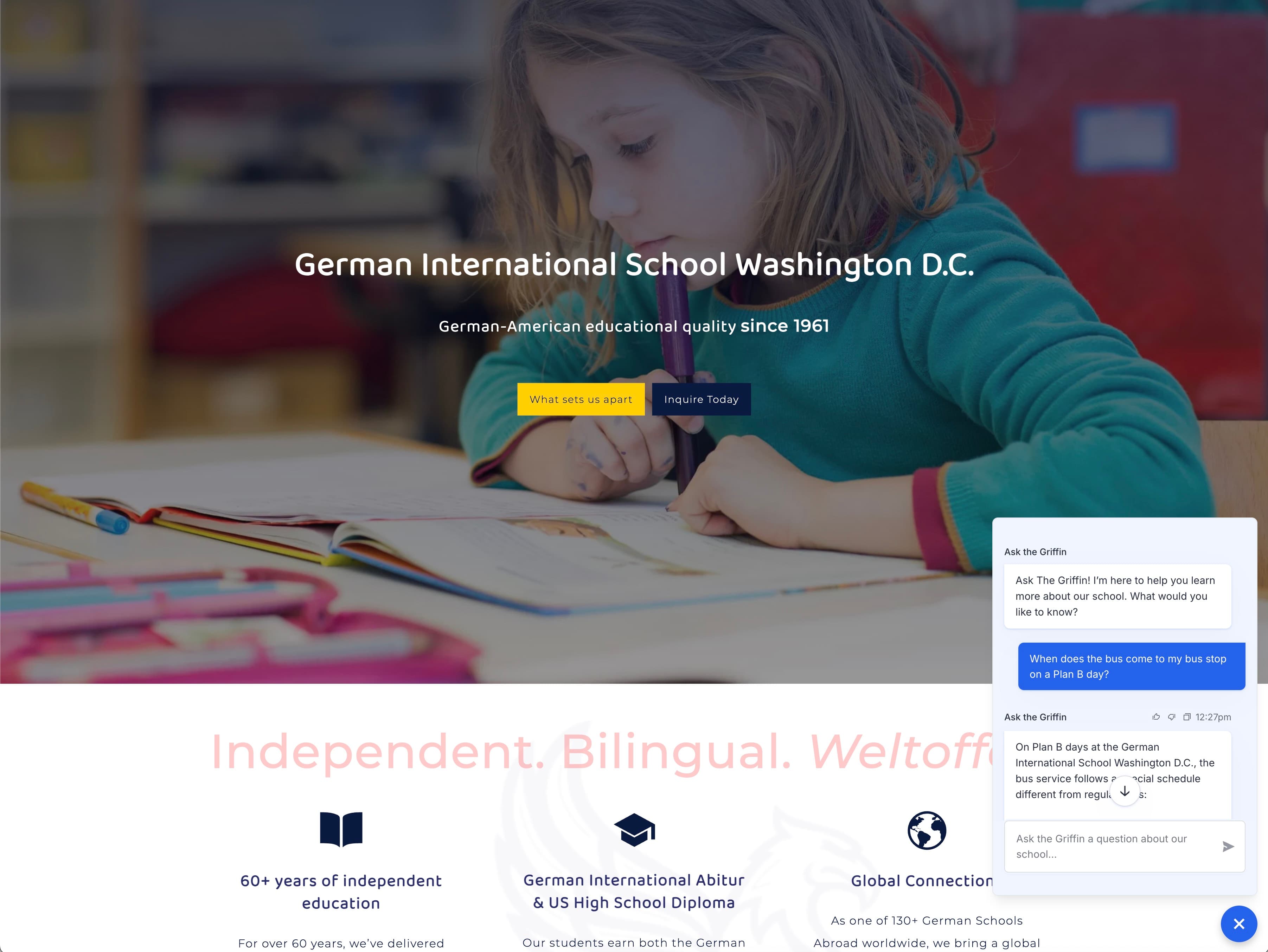 Einführung des Griffin-Chatbots für die German International School Washington D.C.